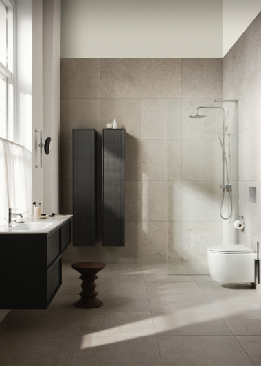 In this dental office, Norrvange Ivory has been used as a floor and wall tile and as a countertop in the kitchen. The reception counter is made of the Glanshammar Silk countertop.