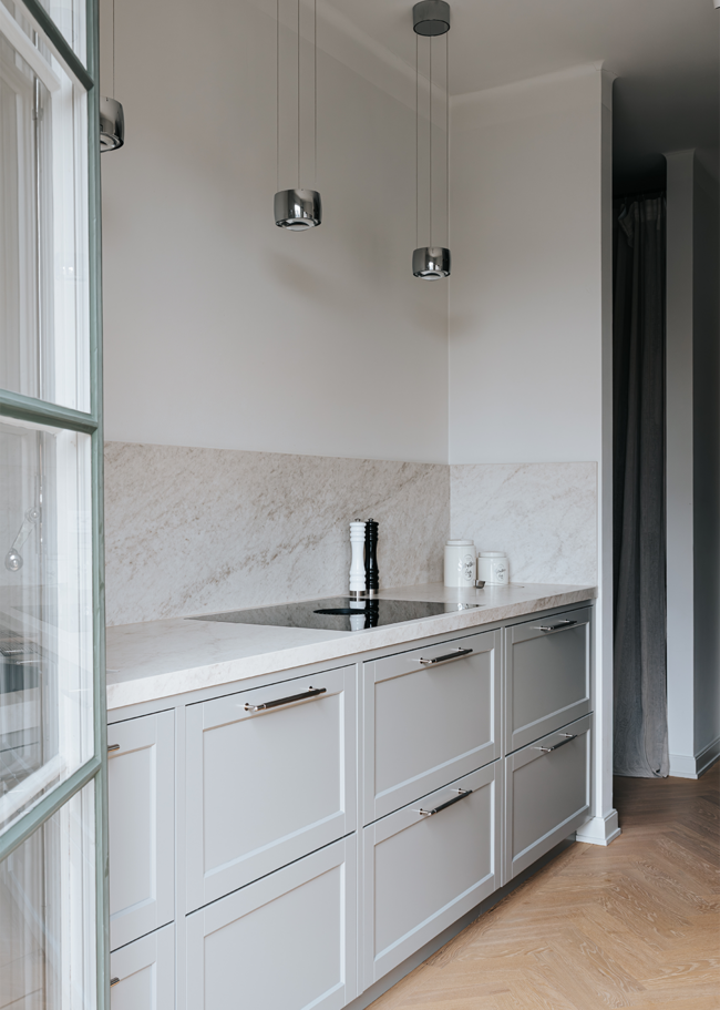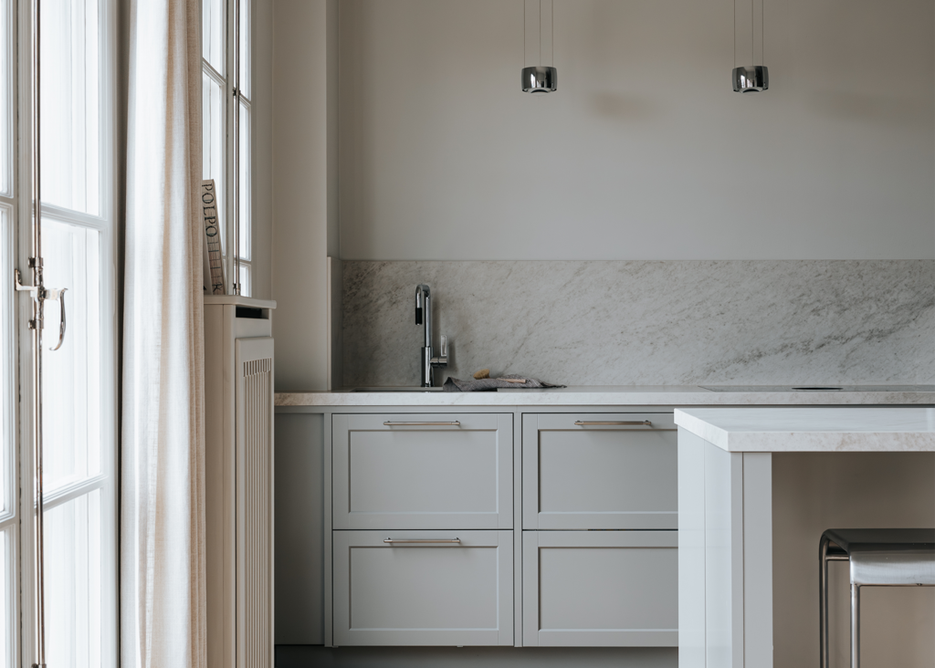 Where classic meets modern, a kitchen with perfect balance comes to life. The Glanshammar Classic Silk countertop takes center stage - its warm tone and subtle veining bring an elegant, harmonious feel that flows throughout the entire space. Inspired by the timeless Ekeberg marble, Glanshammar captures its character through an elegant silk finish, offering a soft, refined expression.